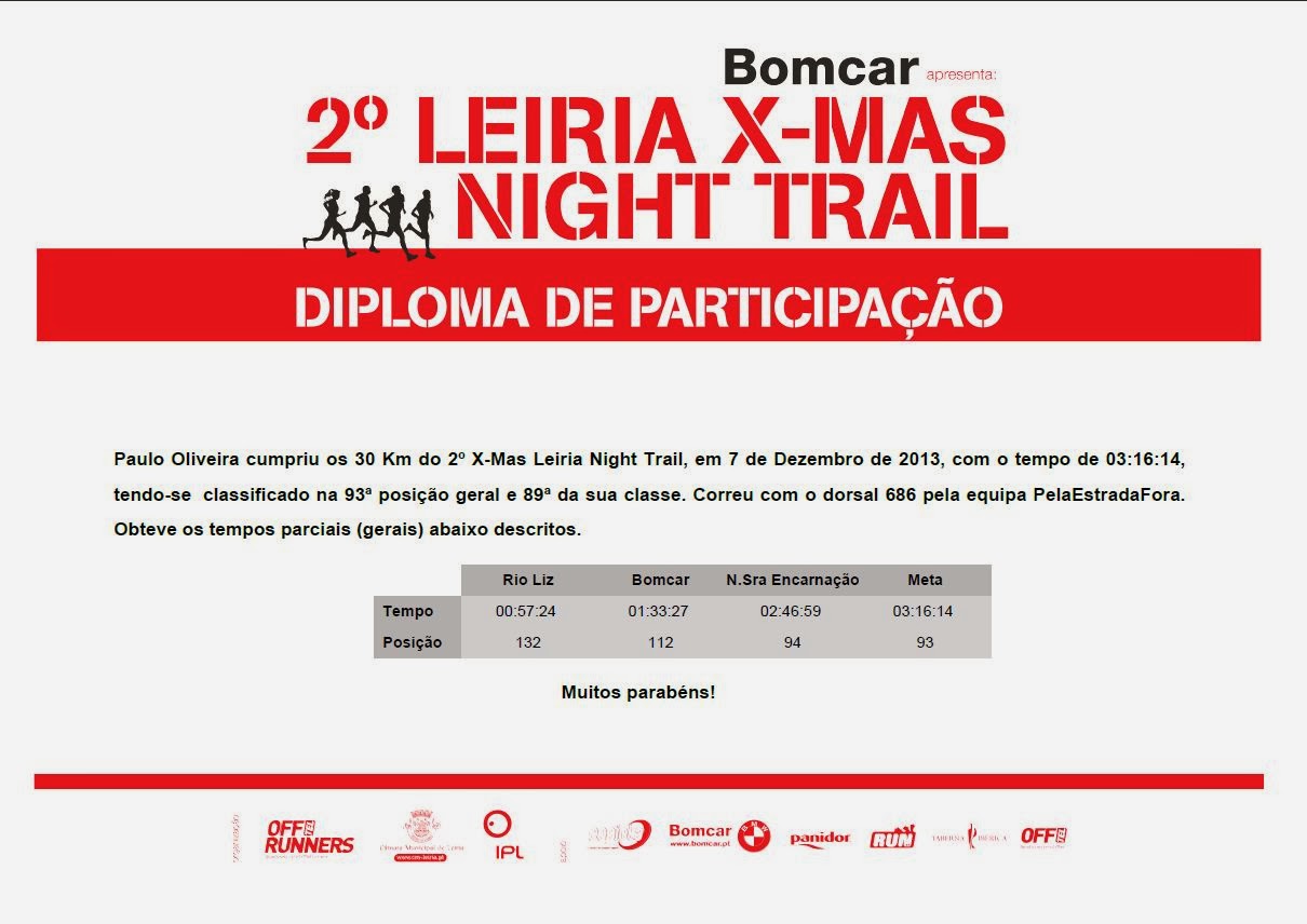 Assim, tendo uma prova mesmo à porta de casa, o “Leiria Christmas Night Trail”, nada melhor do que inscrever-me e participar.